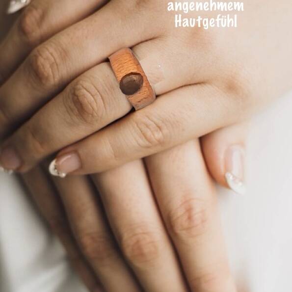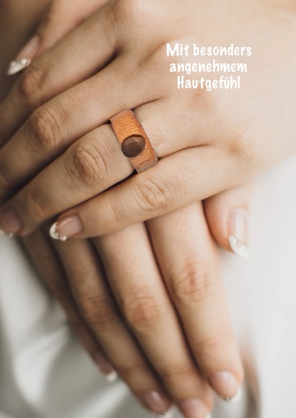 Dieser exklusive Schmuckring besteht aus hochwertigem Buchenholz, das mit speziellem Öl und Wachs veredelt wurde. Die Behandlung verleiht dem Holz nicht nur einen natürlichen, warmen Glanz, sondern macht den Ring auch besonders hautfreundlich und angenehm zu tragen. Die Oberfläche ist fein geschliffen und glatt, wodurch ein komfortabler Sitz gewährleistet ist.
